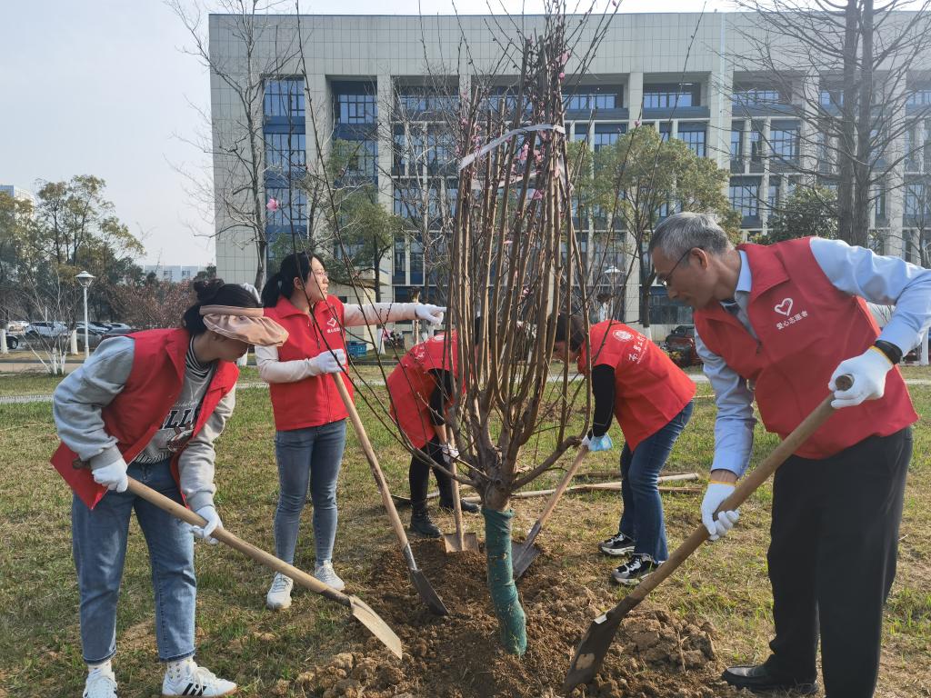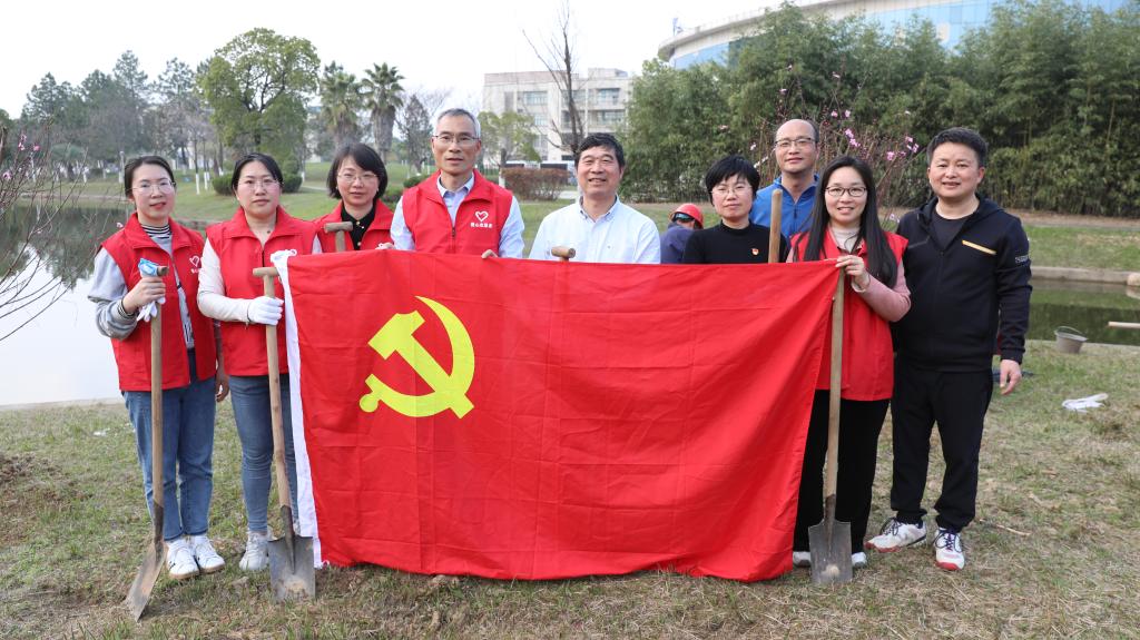 3月10日下午,党委宣传部党支部在学校桃李湖旁开展学雷锋义务植树主题党日活动,校党委副书记吴泽俊参加活动。