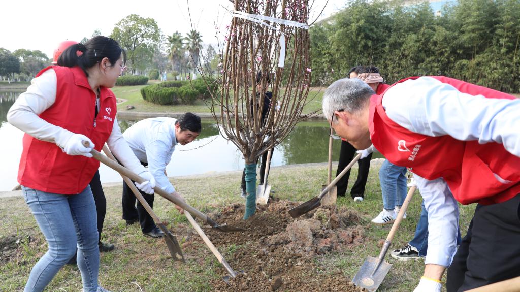 三月春生,万物生长,“植”此青绿,共享美好。大家统一着志愿者服装,分工协作,有条不紊地完成松土、栽培、填土、浇灌等植树步骤,种植桃树6株,在合作中感受到了劳动的快乐,为建设美丽瑶湾贡献力量。(文 陈巧雄 罗莉 图 潘旭 责任编辑 潘旭)