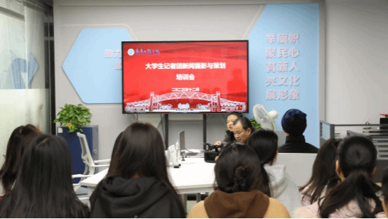 12月10日,大学生记者专题培训举行,融媒体中心教师和学生记者近50人参加。汪智文、吴永亮分别从新闻摄影摄像技法、新闻选题策划和立意、宣传思想文化工作者的使命任务等方面作报告。
