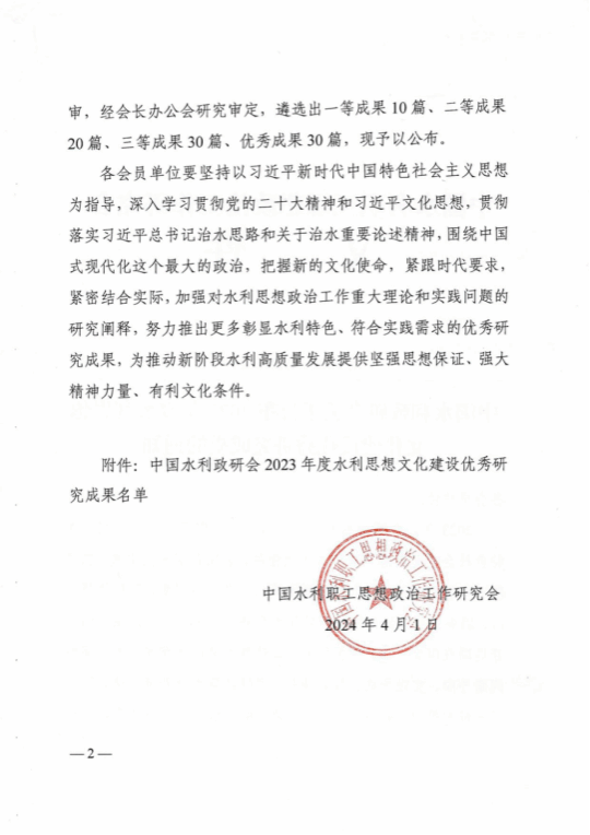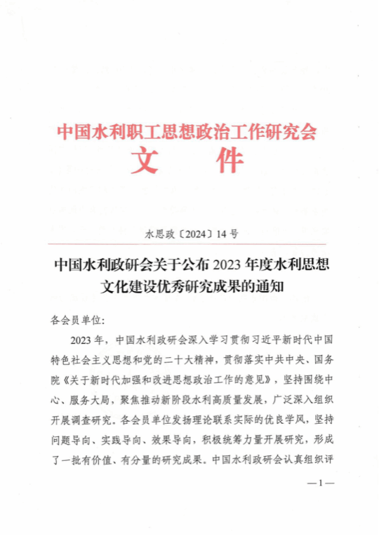我校在2023年度水利思想文化建设研究成果评选中喜获佳绩
